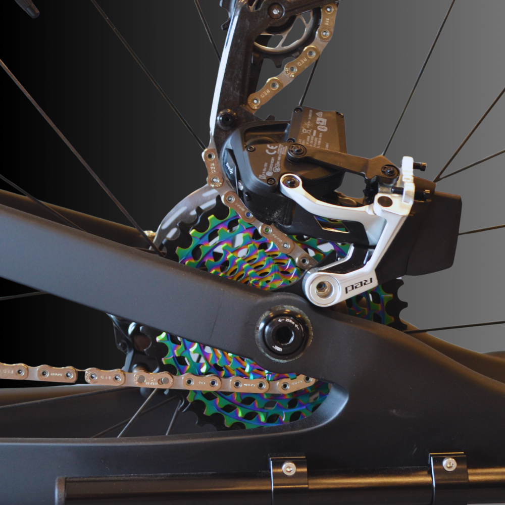 Engineering precision and flawless finishes in a thru-axle system delivering unmatched stiffness and security. Compatible with direct mount derailleurs via hangerless interface or UDH derailleur.