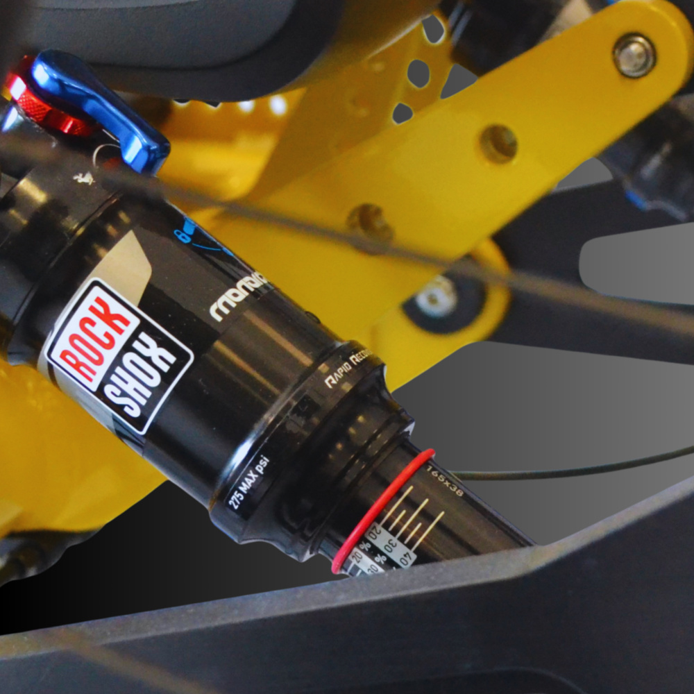 Mounted directly to the frame, the dual rear suspension RockShox Monarch absorbs every bump and jolt, turning rough trails into smooth journeys.