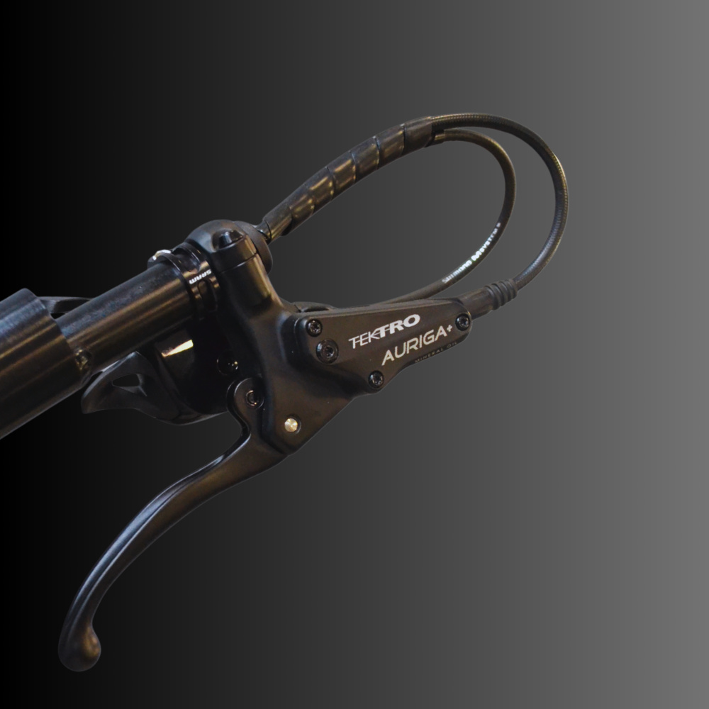 Freno anteriore (obbligatorio): Contropedale oppure Freno a disco idraulico Tektro 220mm installato su supporto per il gomito sinistro