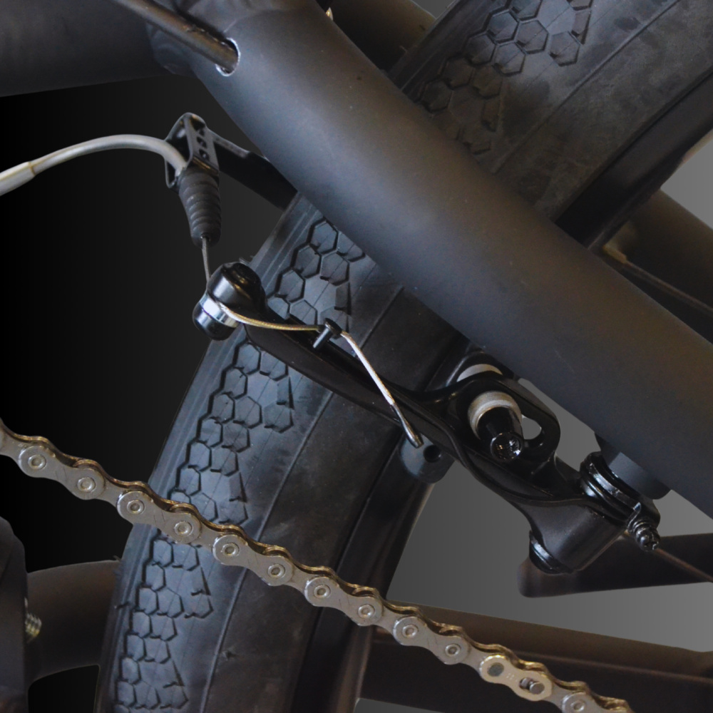 Per le versioni prive di freni posteriori, il freno di stazionamento è integrato nella forcella con un sistema V-brake.