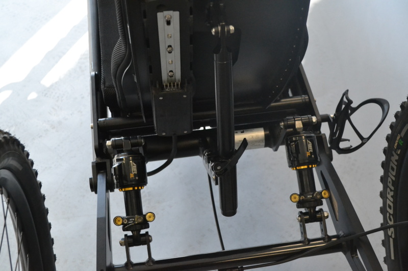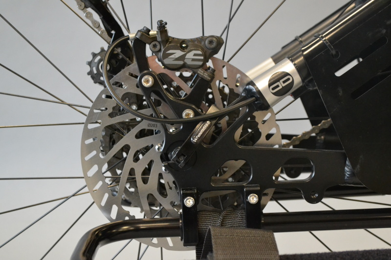 Cambio Sram GX1 AXS 1x12 velocità, motore nel mozzo 250W Ebike-Systems, freno a disco idraulico anteriore, ruote 571 (26’’), copertoni Vittoria Rubino Pro 571-23
